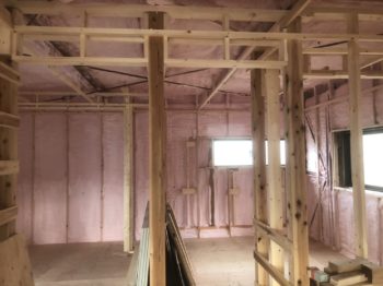 前回の木工事おわり 吹付断熱工事も完了致しました。