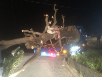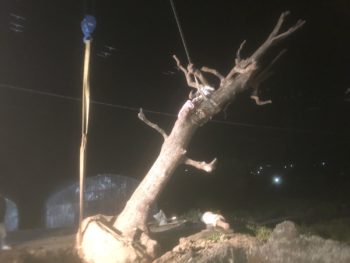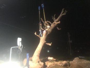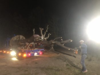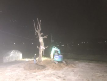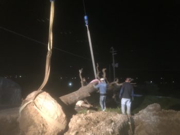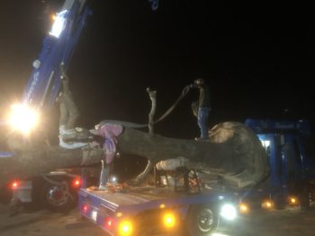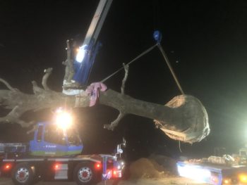 トラックで運んでもらい、レッカーで吊りながら植える作業は、とても迫力がありました。