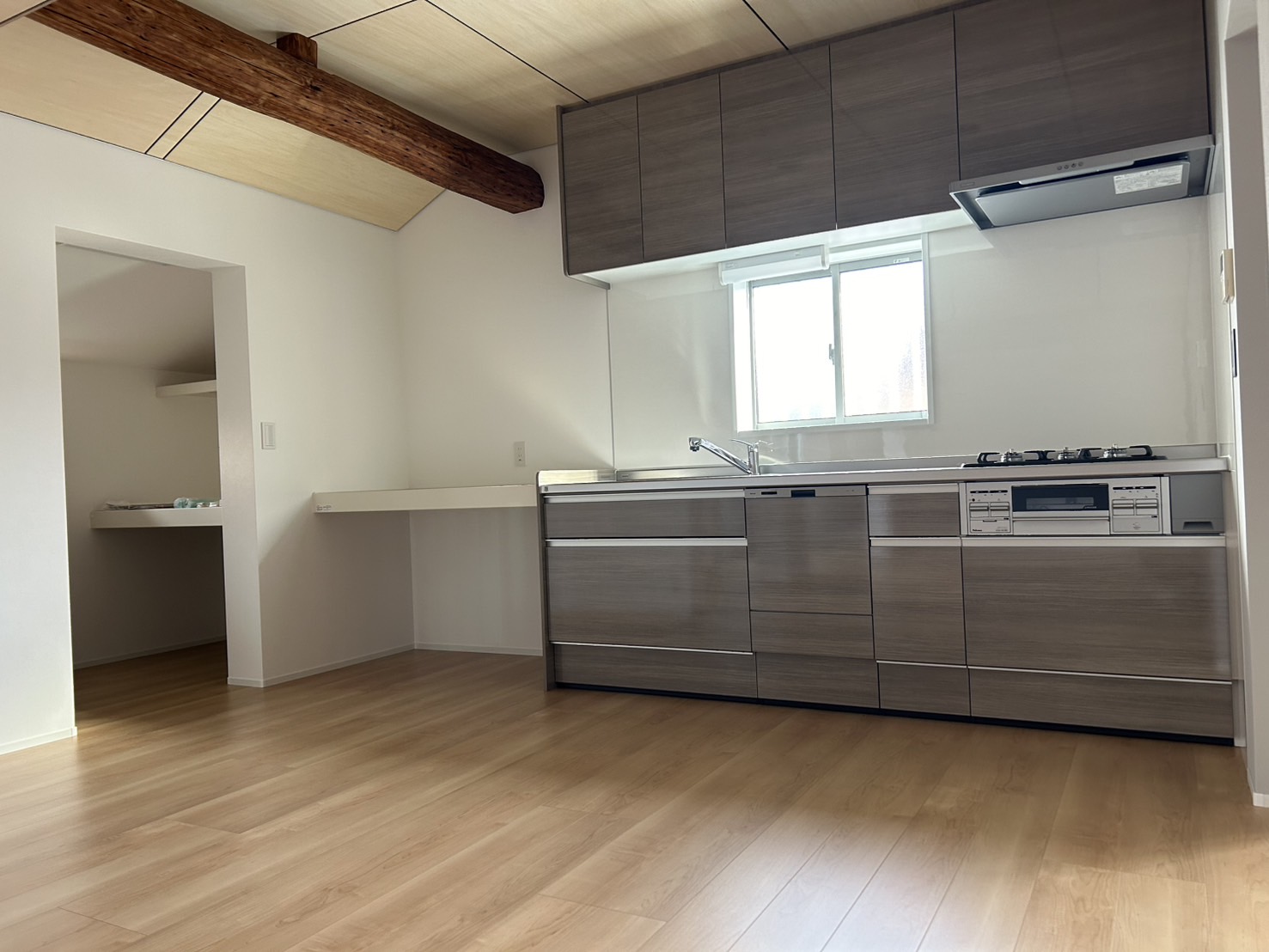 落ち着いた色味のフローリングに、ナチュラルな木目調のキッチン。家全体に統一感が生まれ、明るく開放感のある住まいとなりました。
