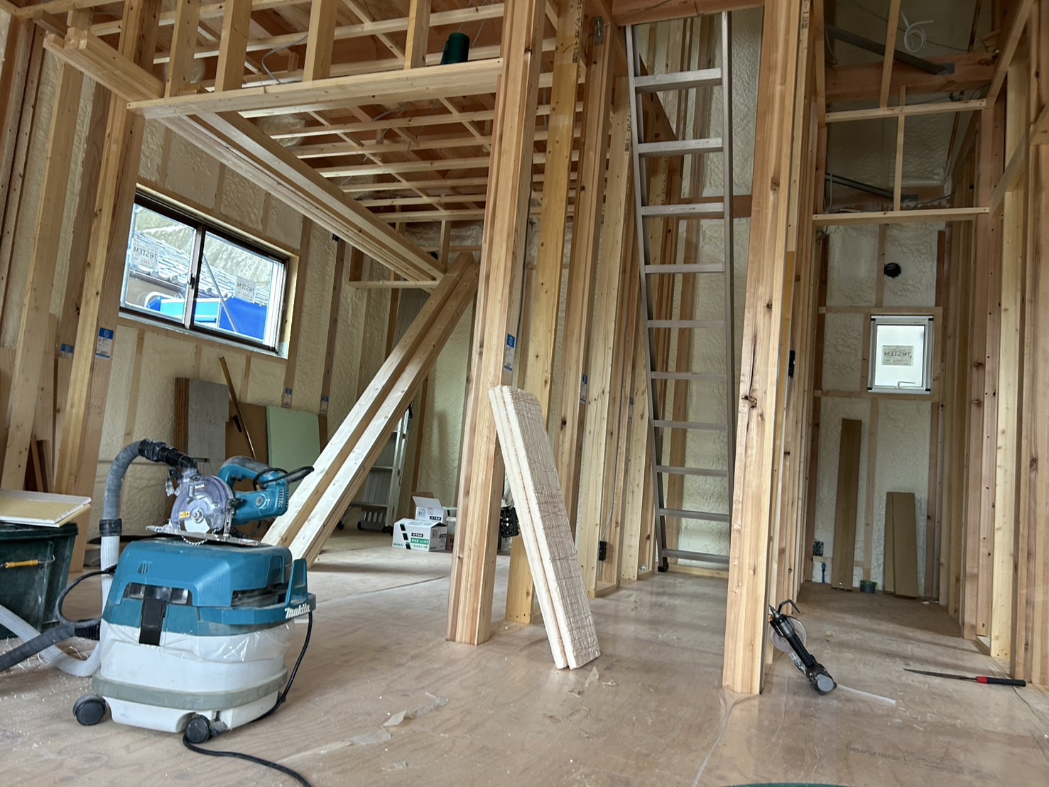 大工さんの丁寧な作業により、建物全体が徐々に「住まい」らしくなってきています。