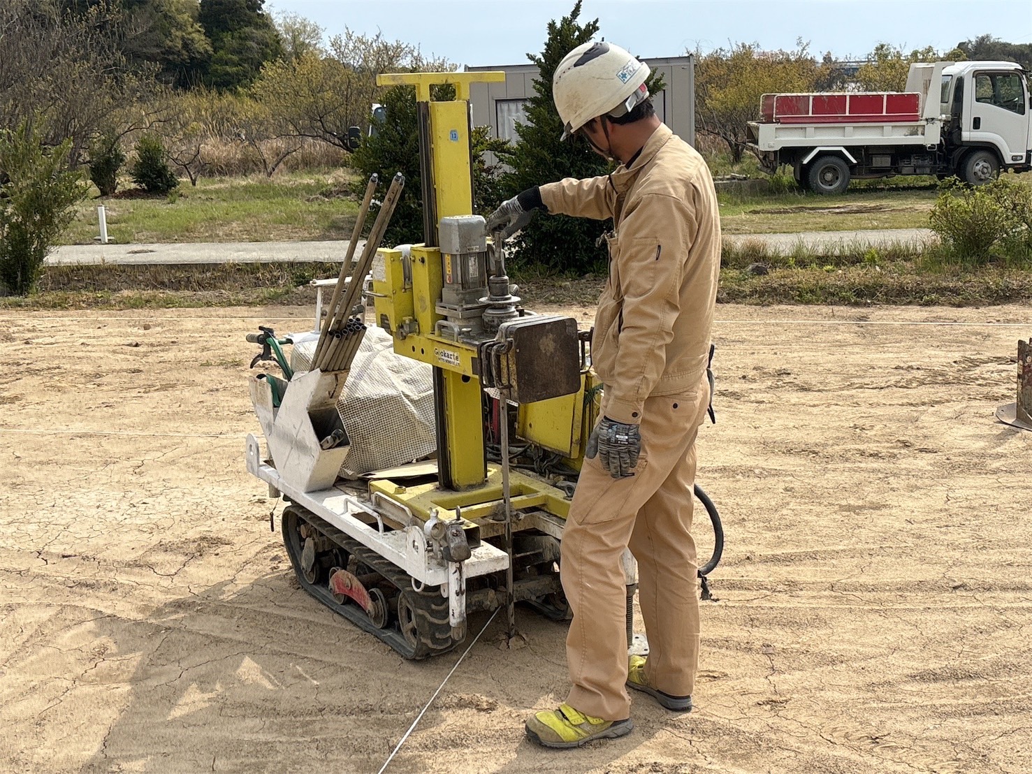 地盤調査は、建物を安全に支えるために欠かせない重要な工程です。地中の土質や強度を確認し、必要があれば地盤改良工事の検討も行います。