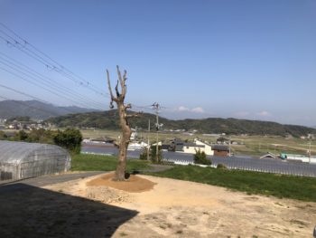こんにちは中村建築です。先日(4/9)敷地内に地元の造園屋さんに樹齢約80年のクスノキを植えてもらいました。トラックで運んでもらい、レッカーで吊りながら植える作業は、とても迫力がありました。こちらに持